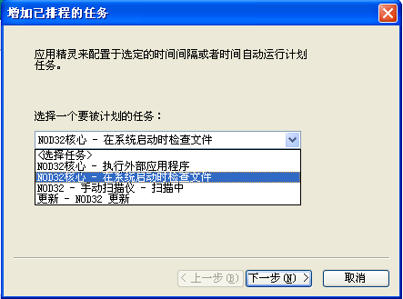 ESET NOD32在系統啟動時殺毒方面提供了非常細緻的設置選項,使用戶可以根據需要靈活制定出最適合自己的系統啟動時殺毒方案。右鍵單擊ESET NOD32系統托盤圖標打開「ESET NOD32控制中心」窗口,點擊「ESET NOD32系統工具」選項,單擊「排程器/計劃器」選項會打開「已排程的任務」窗口。點擊「添加」選項打開「增加已排程的任務」對話框,在「選擇一個要被計劃的任務」框中選中「ESET NOD32核心-在系統啟動時檢查文件」選項(如圖),點擊「下一步」按鈕,在「輸入任務名稱」框中輸入任務名稱,如「系統啟動時殺毒」。接著在「執行任務」欄中根據自己的需要選擇執行任務的頻率,例如每天都會使用電腦,那就點選中「每天」選框,點擊「下一步」按鈕即可。在「執行本任務於」選框中根據你電腦經常開機的時間進行選擇,點擊「下一步」按鈕後,在「如果任務沒有執行」欄中點選中「盡快執行任務」選框,點擊「下一步/完成」按鈕即可。最後在「選擇檢查文件的等級」框中選中「在用戶登錄前執行的文件」選項,點擊「確定」按鈕後即可將此項任務添加到「已排程的任務」列表中。這樣以後ESET NOD32就會按照指定條件在系統啟動時進行查殺操作,由於ESET NOD32查殺病毒速度快,佔用資源少,所以不會影響正常的開機速度。